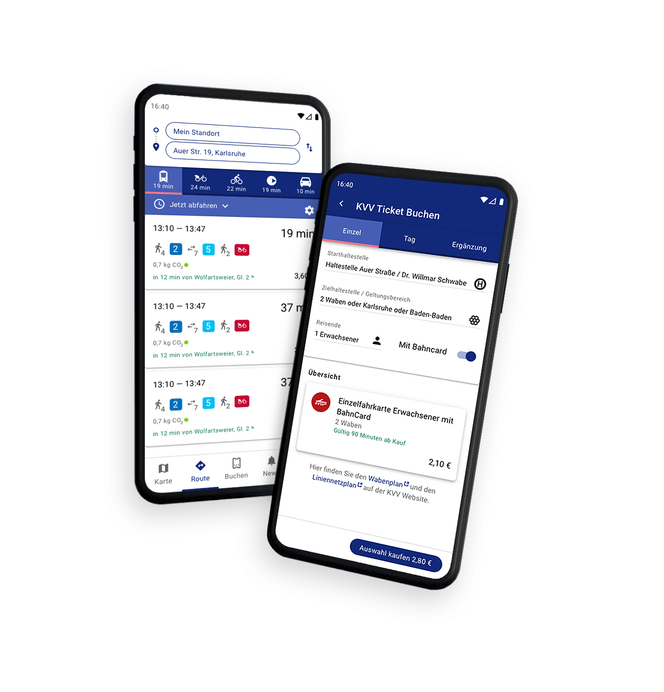 Einmal registrieren, Zahlart hinterlegen und intermodale Fahrten planen, buchen und gebündelt bezahlen. Alles in einer App!